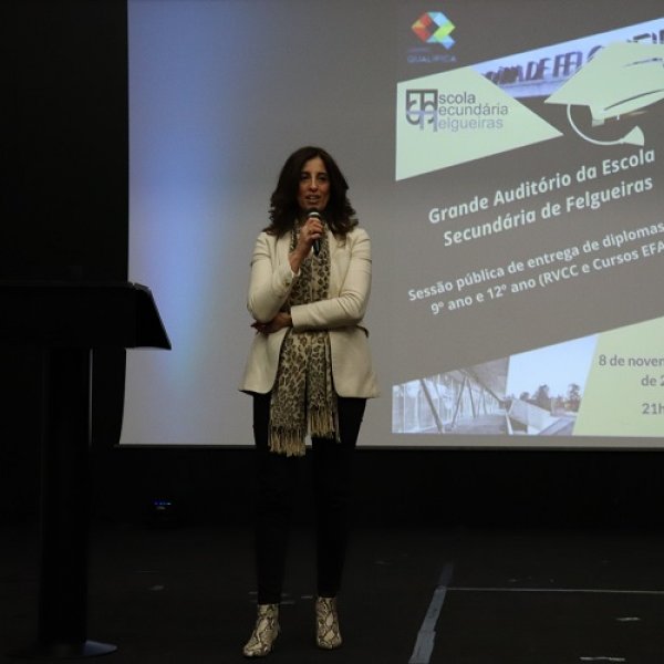 No dia 8 de novembro de 2019, pelas 21 horas e 15 minutos, no Grande Auditório da Escola Secundária de Felgueiras, decorreu a sessão pública de entrega de diplomas a adultos que, no âmbito da atividade do Centro Qualifica, concluíram o nono ano e o décimo segundo ano por processo de reconhecimento de competências adquiridas ao longo da vida (RVCC) e por curso de educação e formação de adultos (EFA). A referida sessão foi presidida pela Diretora da Escola, Drª Anabela Leal, a qual enalteceu o esforço, dedicação e persistência das pessoas adultas que, além dos afazeres pessoais, familiares e profissionais ainda dedicam tempo das suas vidas à melhoria das suas qualificações.